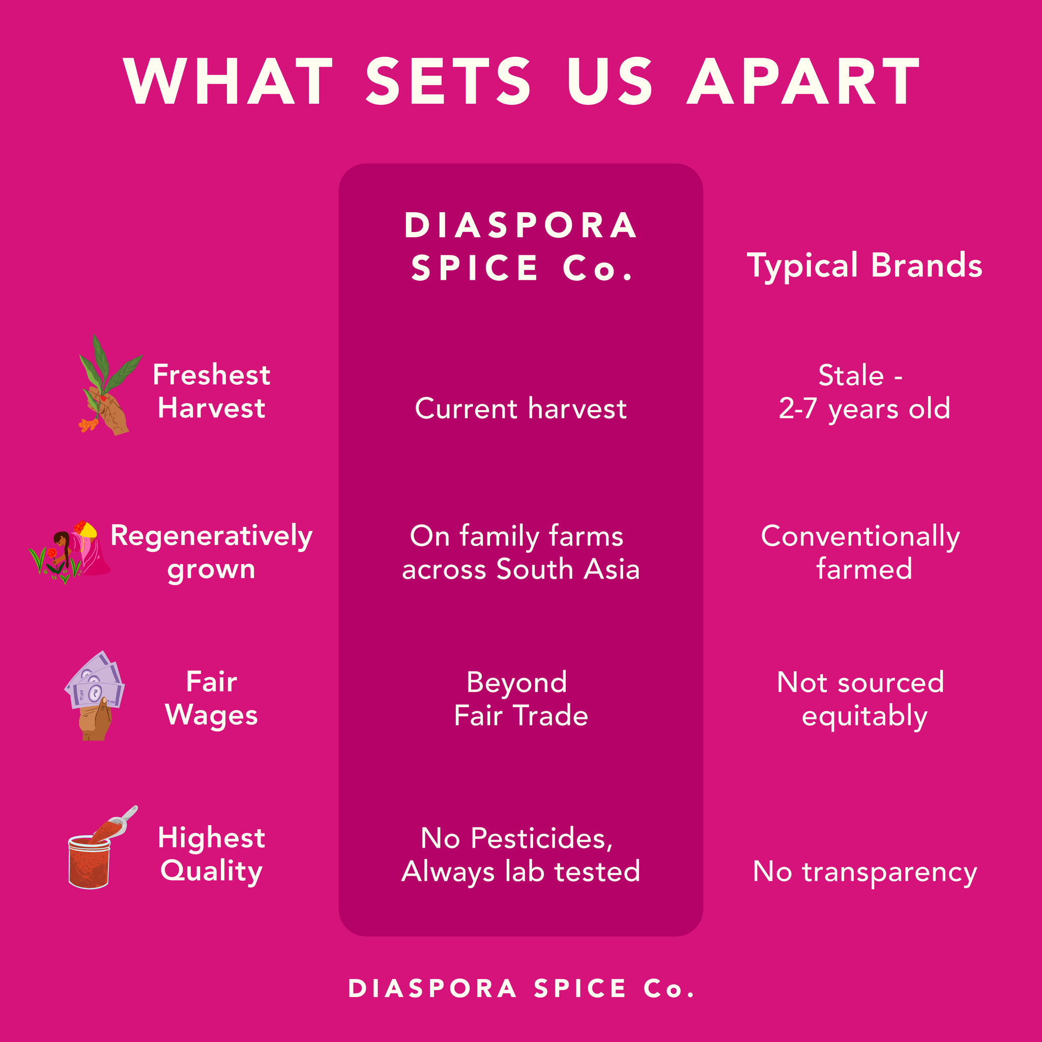 Grown and foraged for us by our friends at Eko Land, a community of organic farmers from the heart of Sri Lanka! This very special cinnamon is a freshly ground blend, developed just for us. It's equal parts "Peni" or sweet, honey-tasting chips from younger trees, and then "Miris" or extra spicy chips from wild old-growth trees.